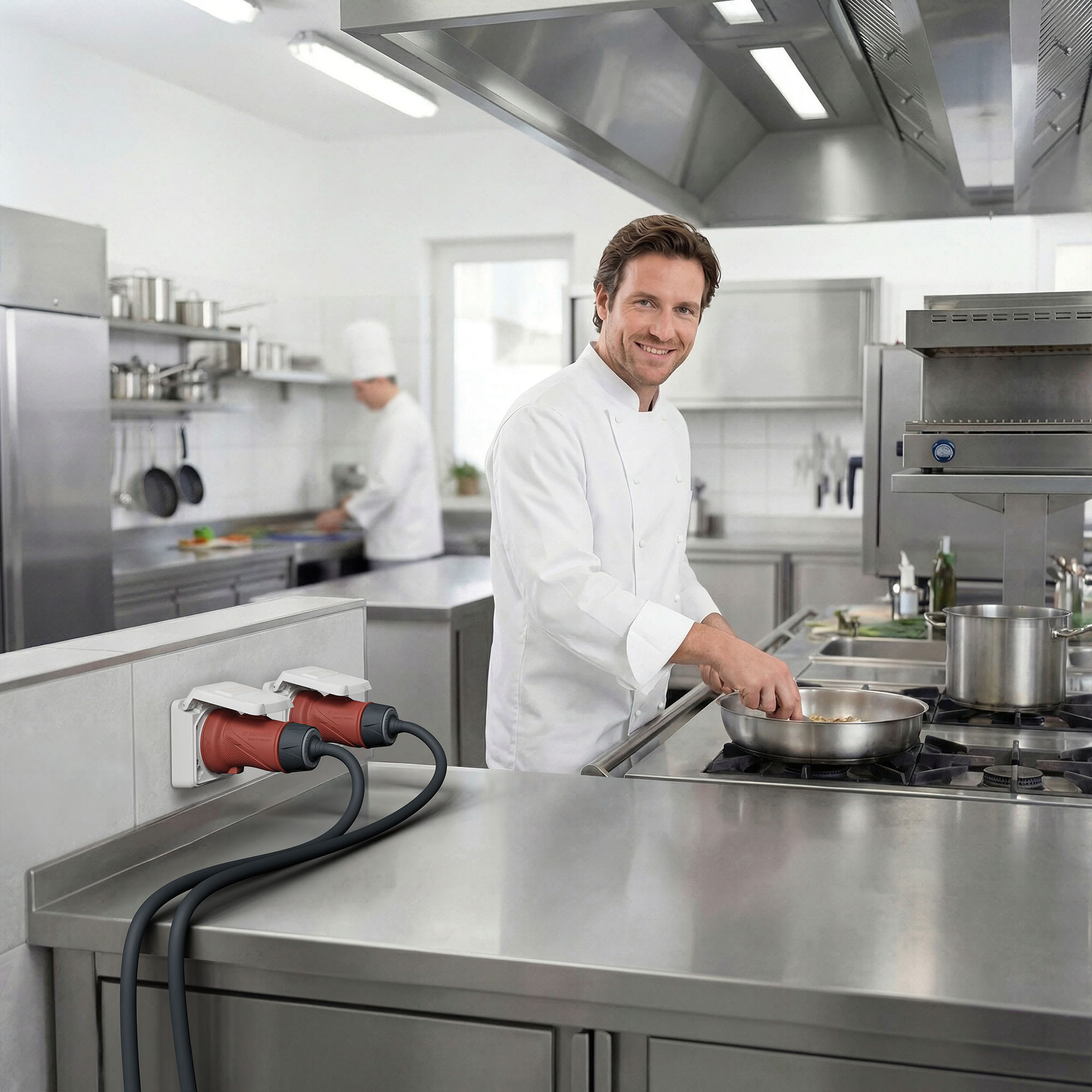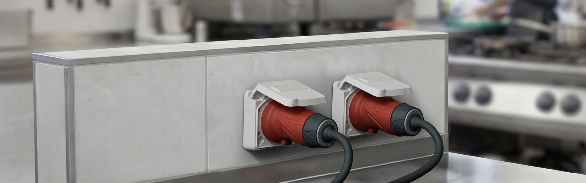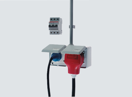En ofte valgt stikkontaktkombination: 16 A CEE og SCHUKO®. Ved tilslutning af denne kombination via én fælles tilledning er det obligatorisk at anvende en 3‑polet automatsikring.