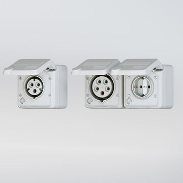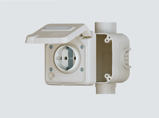 Det store tilslutningsrum giver plads til tilledninger op til 6 mm². Underdelen kan drejes 180°, så kabelindføringen fra neden er mulig uden ekstra arbejde. Beskyttelsesklasse IP54 (beskyttet mod støv og stænk) gør de udenpåliggende stikkontakter egnede til en lang række anvendelsesområder. Yderligere membraner er tilgængelige i kapslingen.