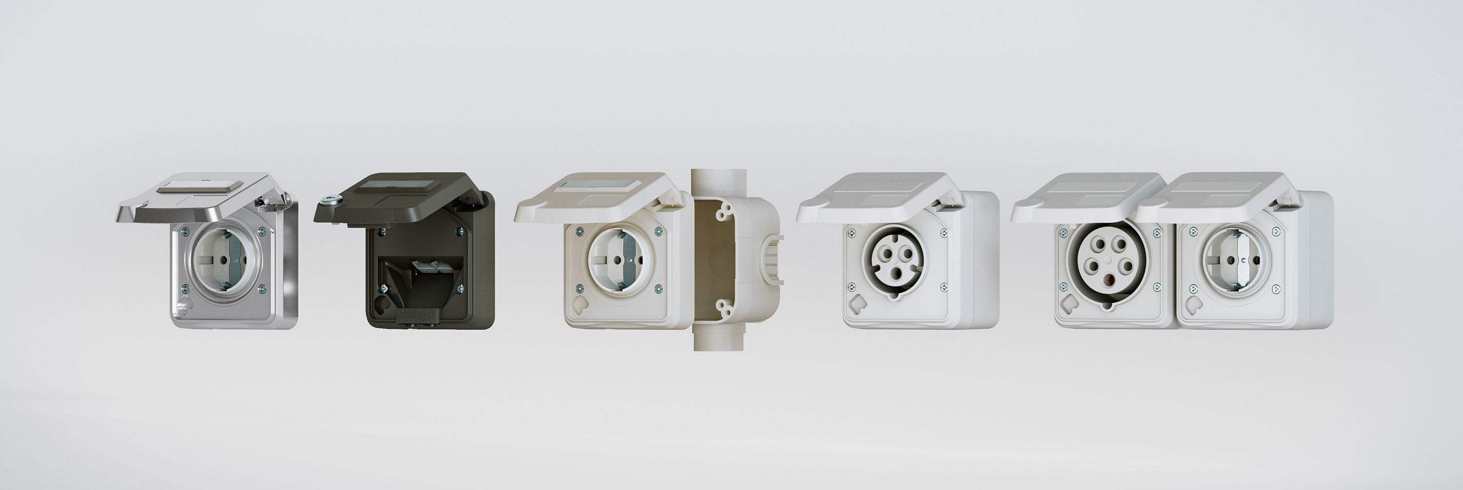 Vores påbygningsstikkontakter kan kombineres med følgende letvægs‑ og indbygningsdåser: